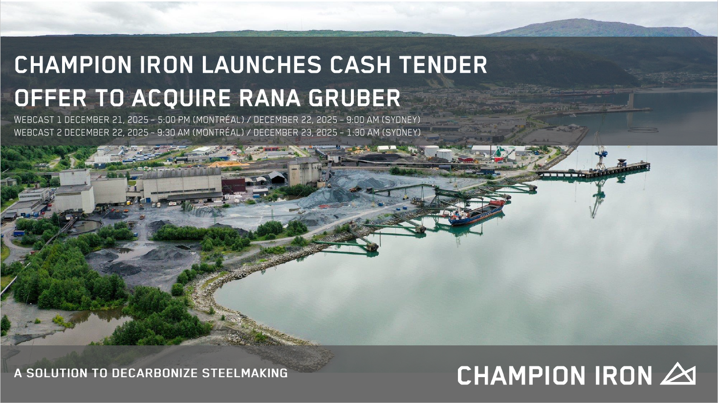 CHAMPION IRON TO LAUNCH CASH TENDER OFFER TO ACQUIRE RANA GRUBER